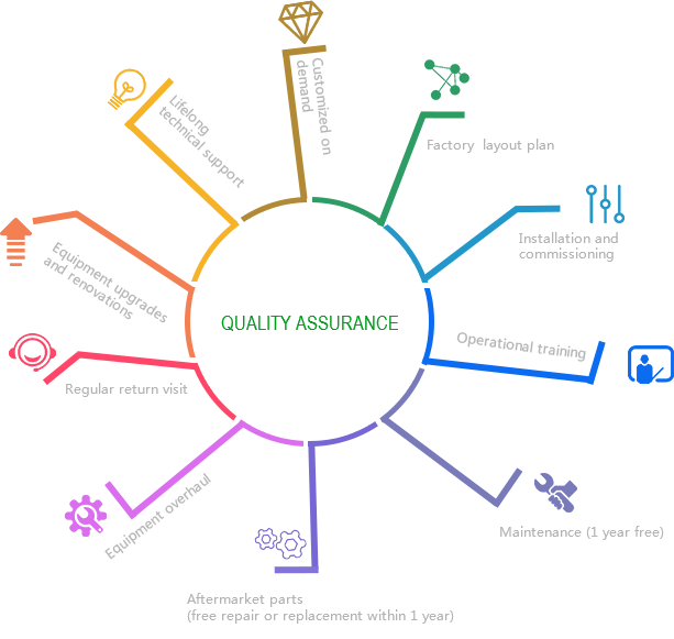 The professional sales staff will provide you with comprehensive technical consultation, fully understand the performance characteristics of the products, and provide technical services such as plant, layout, personnel training, etc. according to the different situations of the customers, and the business budget and suggestions. After the machine is inspected and used, the professional technicians carry out the whole process tracking service, providing users with free installation...